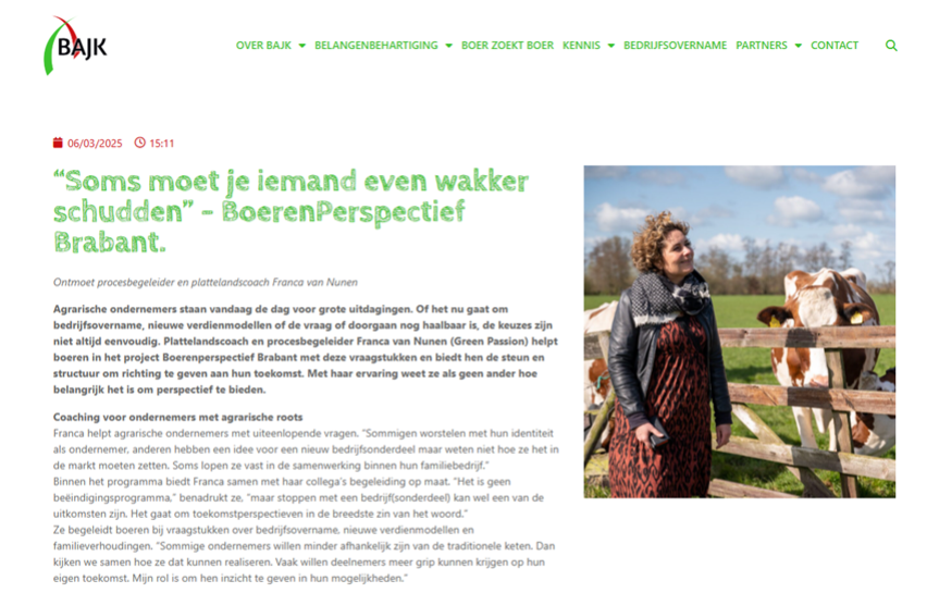 Video over het coachtraject van Melkveehouder Tijmen van Zessen, van Zouwe Zuivel waar Franca als Plattelandscoach actief is geweest.
